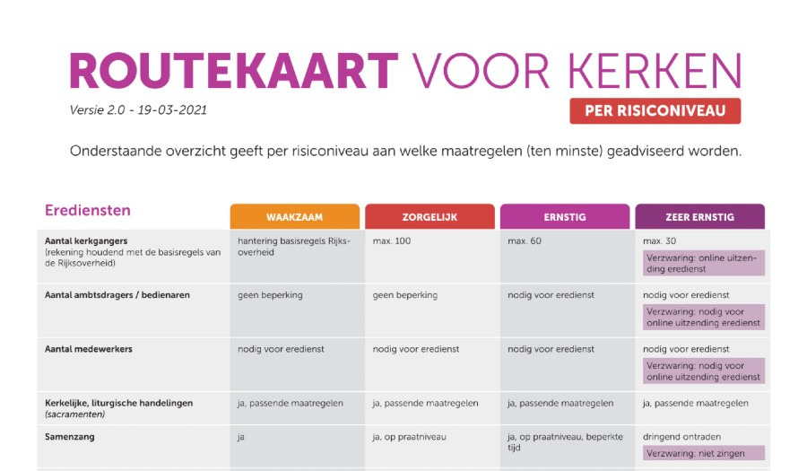 Het Interkerkelijke Contact in Overheidszaken (CIO) heeft een routekaart voor kerken gepresenteerd als weloverwogen advies voor de eenendertig bij het